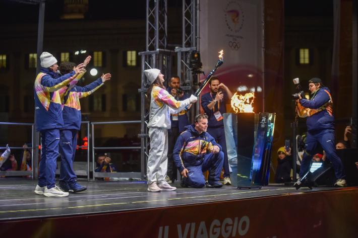 Milano, la fiamma olimpica illumina piazza Duomo: l'accensione del braciere - Foto