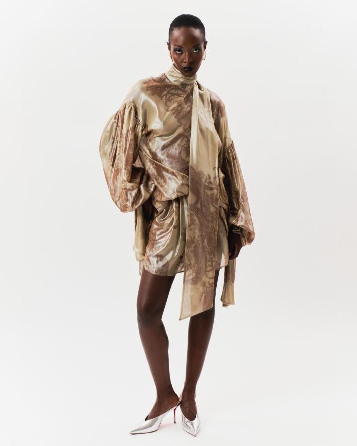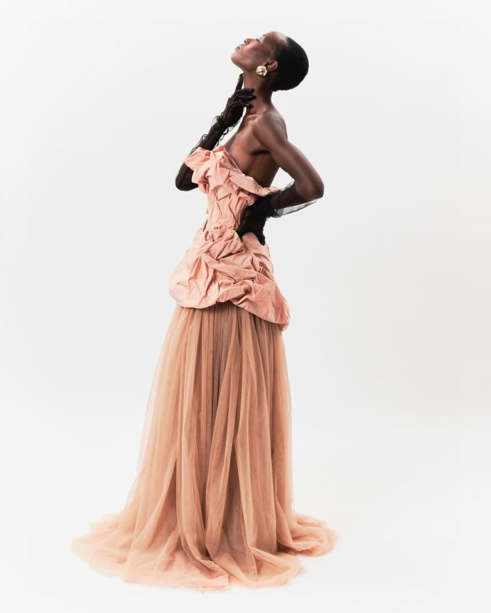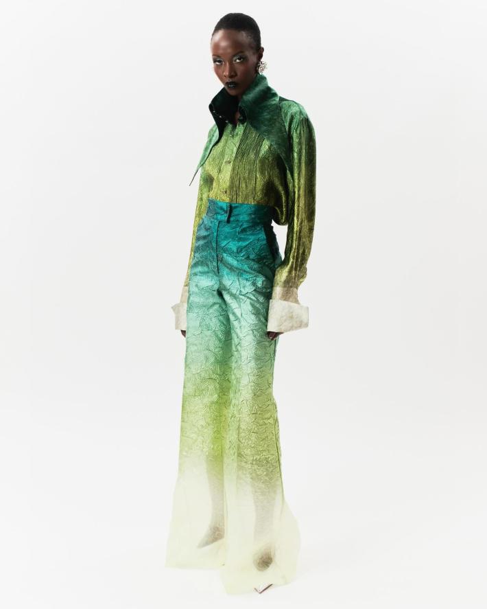 - fino ad arrivare alla nobiltà e alla purezza delle forme». Sessantasette i capi di quest’ultima collezione di alta moda, costruita con taffetà di seta, duchesse, mikado, broccati, organze, chiffon e crêpe de chine. Con il suo team lo stilista ha anche creato un particolare tipo di broccato stropicciato in seta pura, sfibrato nella sua texture in modo tale da declinare in sfumature cromatiche. Il broccato, così lavorato, muta, alleggerendosi e sfumandosi, fino ad acquisire leggerezza e impalpabilità. Non solo. Per quest’ultima collezione, è stata altresì creata una speciale laminazione metallica che conferisce ai tessuti una splendida luminosità, argentea ed eterea. «“Alabastro” è il mio inno alla luce interiore, alla bellezza che resiste al tempo. Non è solo moda, è un’offerta. È il mio regalo a chi crede che l’eleganza non debba mai urlare, ma lasciare senza fiato. La couture è un atto d’amore. Il resto è solo moda». E forte di quello che lui definisce il suo «dream team», composto da valenti artigiani e sarti italiani, lo stilista punta tutto sul Made in Italy, dalla provenienza dei materiali alle maestranze, veri artisti nel settore.
