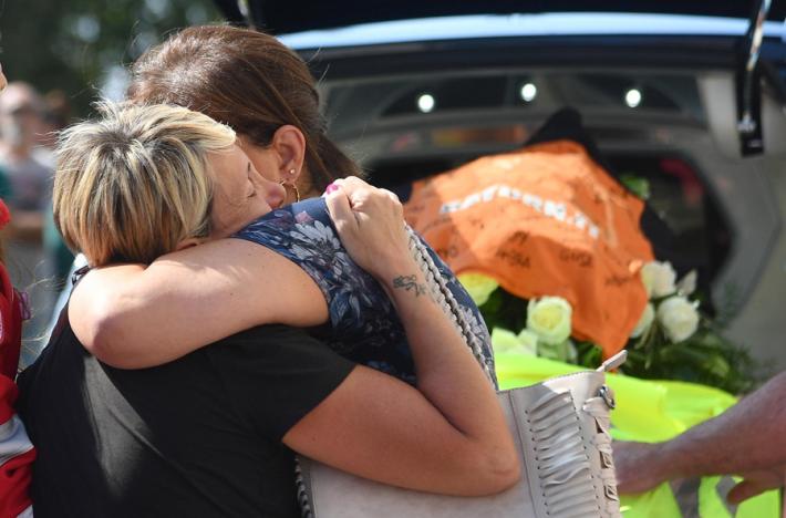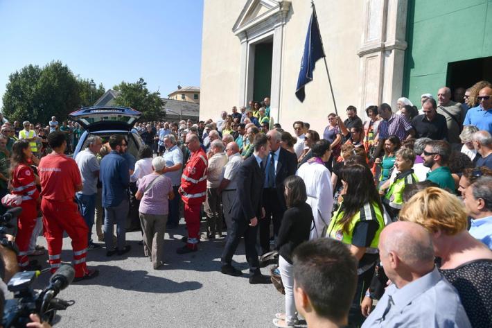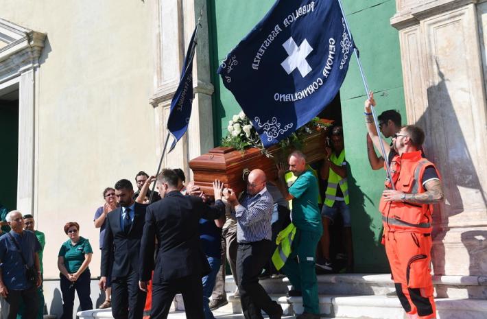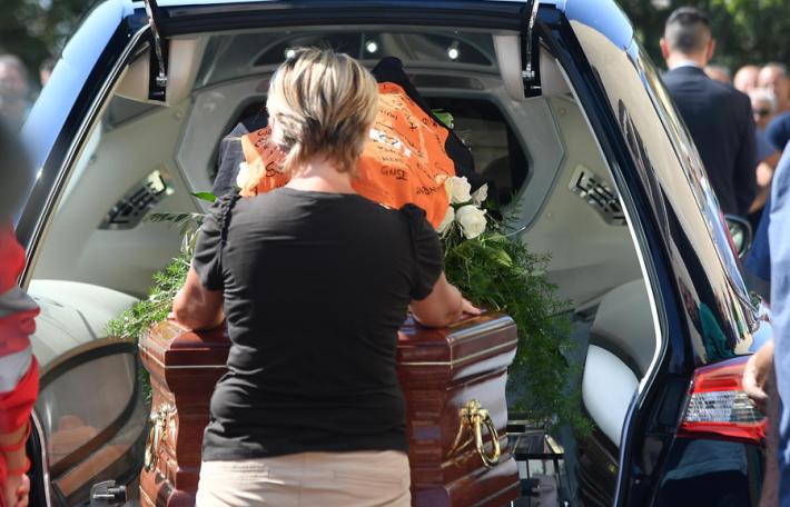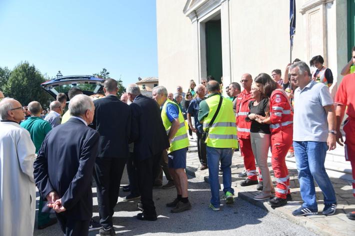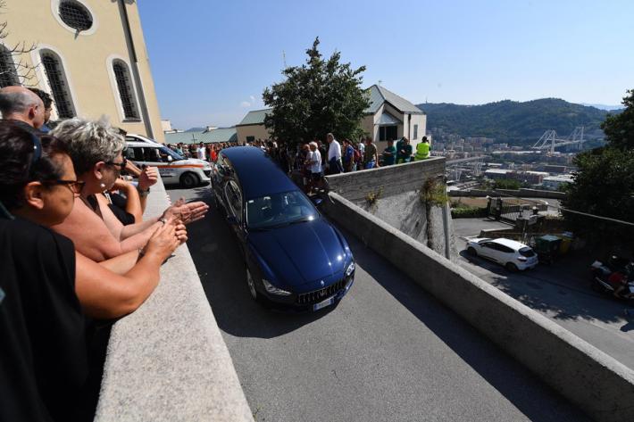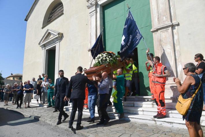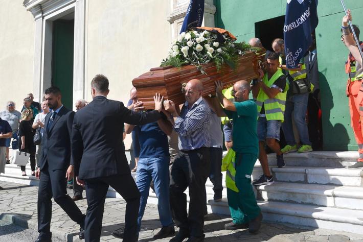 In chiesa il sindaco di Genova Marco Bucci, assieme a quello di Monchio delle Corti Claudio Moretti, il prefetto, gli assessori regionali e comunali. Tra le corone di fiori, che hanno riempito il santuario di Coronata anche una bianca con scritto 'i genovesì. Durante l’omelia Don Luciano ha ricordato come, anche da questa tragedia, esca una luce. «Quanti cuori si sono aperti - ha detto - e quante maniche sono state rimboccate». All’uscita del feretro un lunghissimo applauso e il lancio di palloncini azzurri.
