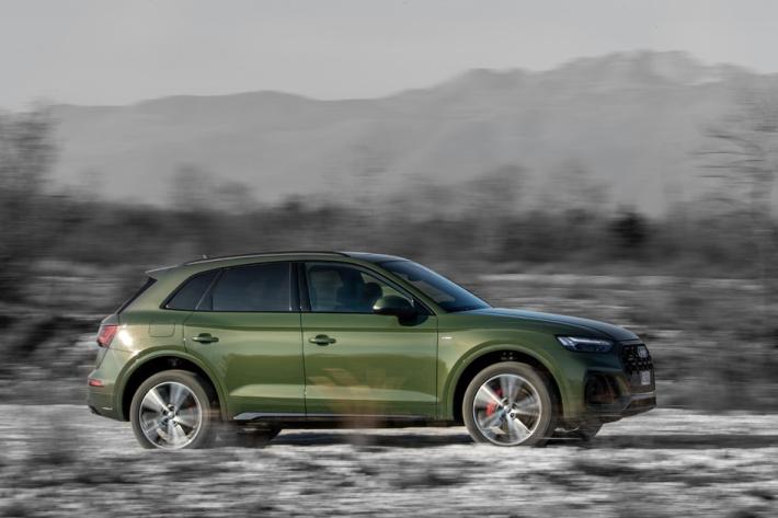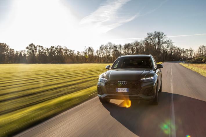 Cuore di gamma è Audi Q5 40 TDI quattro S tronic: motore 2 litri diesel da 204 Cv, 0-100 in 7”6, consumi sotto controllo (sì e no 7 l/100 km) sia grazie al sistema mild hybrid 12 Volt, che in frenata e decelerazione recupera energia e consente a di avanzare per inerzia a motore spento (per alcuni secondi), sia al sistema di trazione quattro  che ripartisce una quota di coppia motrice al retrotreno solo quando necessario.