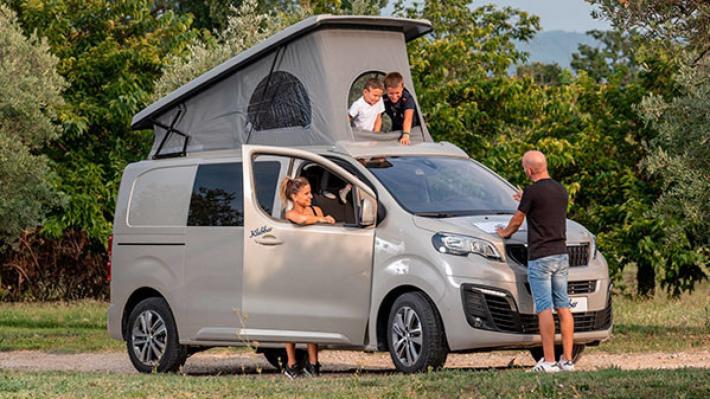 A contendere la scena a Boxer Bravia è Peugeot Expert allestito da Klubber, veicolo che ha come base di partenza il commerciale del Leone di maggior successo, nella configurazione di lunghezza intermedia (4,96 metri). Dotato di tenda a soffietto sulla parte superiore, è in grado di accogliere a bordo 5 persone durante la guida, o 4 durante la notte. Tre le configurazioni dell’abitacolo: Road (fino a 7 passeggeri), Camping (5 passeggeri) e Night (4). Listino a partire da 49.033 euro.