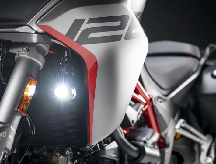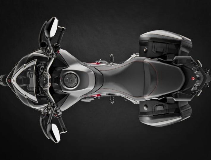 La sella è specifica, quindi presumibilmente più comoda rispetto a quella delle altre versioni; la livrea dedicata include la scritta “Grand Tour”, collocata sul cupolino, appena sopra il gruppo ottico. Per la sicurezza in ogni condizione in Ducati hanno pensato di montare le luci supplementari anteriori. Infine sono previsti di serie due accessori certamente utili, sul doppio fronte del comfort e ancora della sicurezza: il tappo del serbatoio carburante con apertura elettrica (senza chiave) e i sensori TPMS di pressione pneumatici, collegati via Bluetooth alla strumentazione.