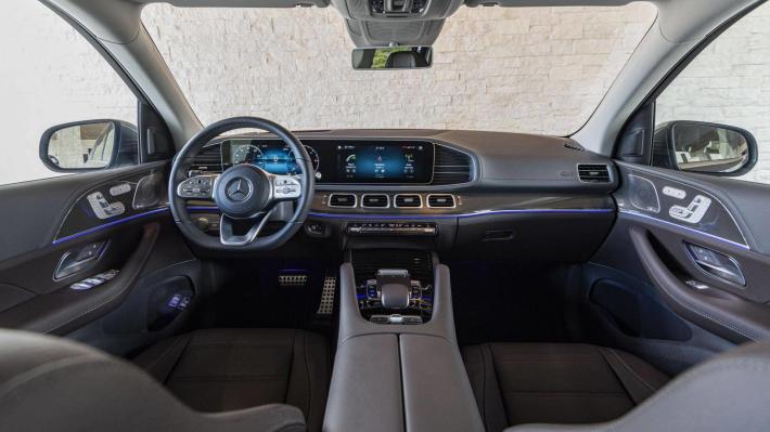 Lo stile è un classico Mercedes, fisico massiccio più che muscoloso, e un tocco di superbia nello sguardo. Il cofano contiene un 6 cilindri in linea diesel (289 o 330 Cv) e un ottovù mild hybrid a benzina (489 Cv) assai potenti, ma solo perché il loro compito è spostare 2,5 tonnellate.