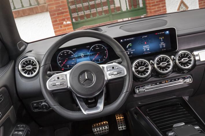 Su GLB debuttano, a richiesta, i fari Multibeam LED, che consentono un adeguamento rapido a gestione elettronica delle luci di marcia alle condizioni del traffico. E' di serie il sistema MBUX (Mercedes-Benz User Experience) così come i due display da 7" touchscreen (strumentazione e multimediale) che a richiesta diventano da 10"25. A proposito di tecnologia, grazie alle telecamere e ai sensori radar GLB è infatti capace di 'vedere' fino a 500 metri davanti all’auto e, in alcune situazioni, di adottare una guida parzialmente automatizzata. Il sistema Distronic modifica la velocità in prossimità di curve, incroci o rotatorie, ricorrendo anche ai dati cartografici.