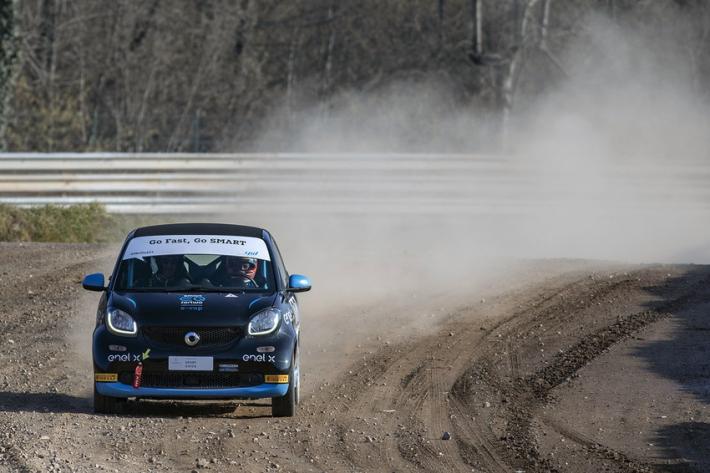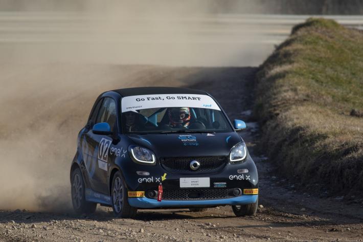 Quindi noi siamo in pista a scherzare e divertirci, invece stiamo scrivendo una piccola paginetta di storia testando uno degli esemplari elettrici da corsa che fra 10 anni verrà visto con un sorriso, proprio come facciamo noi quando guardiamo una vettura del passato e non immaginavamo affatto cosa ci avrebbe riservato il futuro. Vabbè, non stiamo a menarla oltre il dovuto, fatto sta che con la Smart elettrica versione Rally Cross si impara a guidare, perché sia in pista sia fuori, occorre una pulizia di guida notevole per non perdere tempo, una capacità di gestire l'energia a disposizione per averla al momento buono, per fare un sorpasso o per non calare il ritmo. Nel suo piccolo Smart insegna tutto questo e visti i costi, è davvero una bella soluzione intelligente. Ci siamo divertiti, abbiamo imparato qualcosa di nuovo e la risposta alla domanda: vorresti provarla ancora magari in gara? E' un sì forte e chiaro. Magari cominciando ad abituarci a usarla anche per strada tutti i giorni...