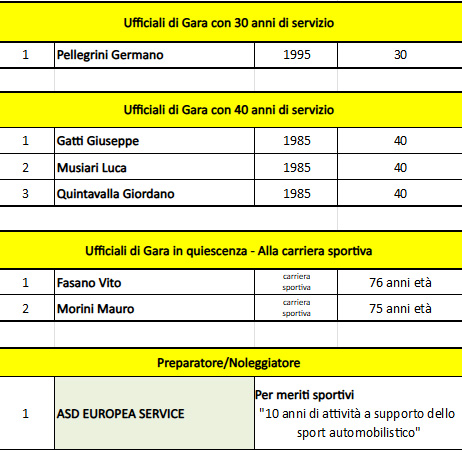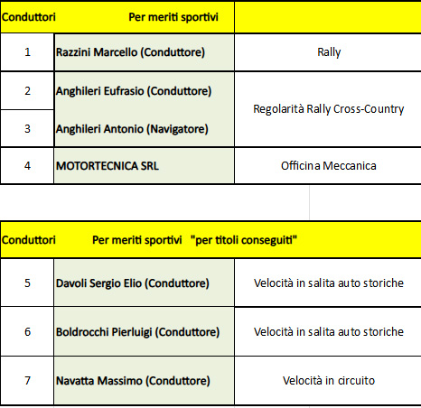 · consegna dei premi ai piloti ed agli ufficiali di gara licenziati ACI Parma