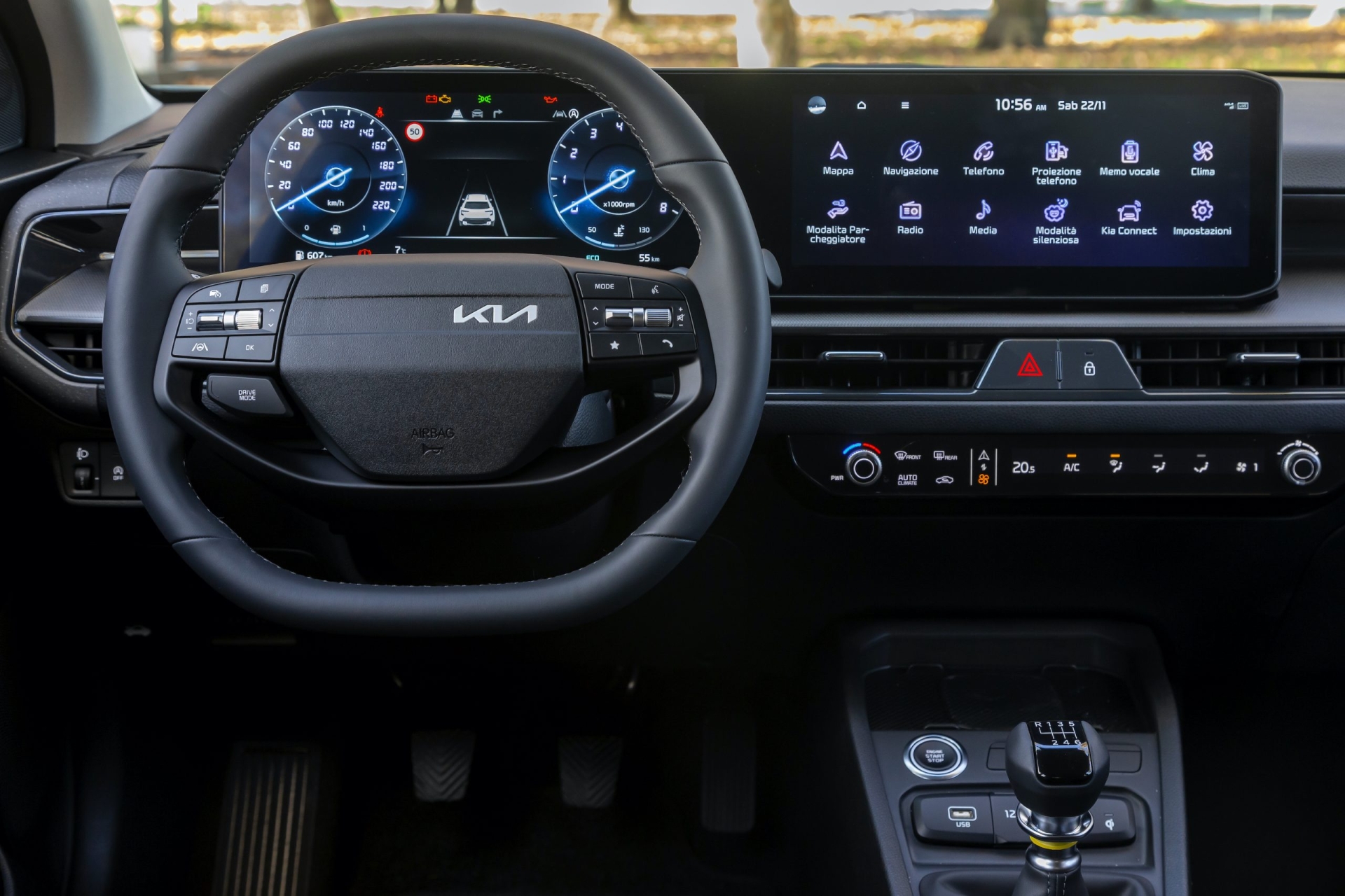 Lo stesso vale per gli interni dominati dal doppio schermo da 12”3 che scorre sulla plancia, ricordando le vetture elettriche, che peraltro restano uno dei pilastri di Kia. Non si vedono ma vigilano tutti i sistemi Adas, anche quelli che solitamente in questo segmento non troviamo, come lo Smart Adaptive Cruise Control, il supporto alla guida autostradale o il multi collision brake. Bello il nuovo volante (già visto però in Kia) a tre razze, il tunnel centrale è stato ripensato in chiave più ergonomica, i sedili sono stati rivisti per trama e materiali (solidi, comodi ma appena rigidi). Ben camuffate le bocchette dell'aria "slim" che corrono in orizzontale.