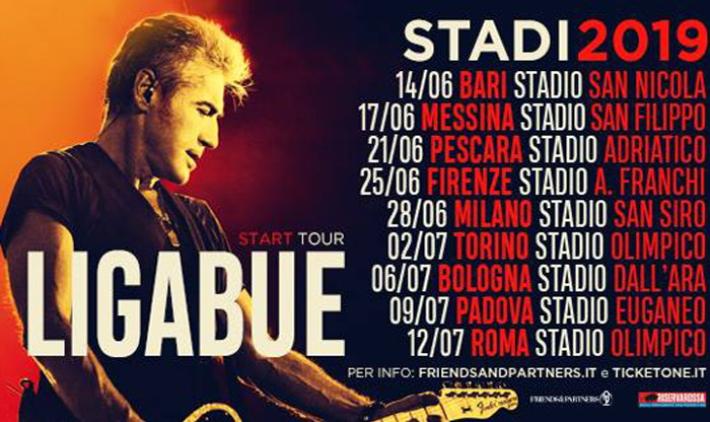 «La scaletta degli stadi, nei quali sono andato a suonare per la prima volta ventidue anni fa, è sempre un 'problemà - ha detto Ligabue - perchè tendo a dare per scontato che a sentirmi verrà anche un pubblico occasionale, oltre ai fan, e qualcuno che magari arriva per la prima volta e poi forse non verrà mai più. Ritengo quindi importante far sentire buona parte del materiale nuovo e una sfilata delle canzoni tra le più famose. Questa volta ho trovato l’escamotage dei due medley: uno voce e chitarra e uno in chiave club rock, che mi permettono di far sentire qualcosa in più e di rendere lo spettacolo un pò diverso dal solito». Se il primo dei due medley in questione è in modalità voce e chitarra e cambierà praticamente ogni sera, il resto della scaletta è in gran parte definito, per uno spettacolo che si apre con 'Polvere di stellè e 'Ancora noì, a presentare il Liga al suo pubblico per uno show di oltre due ore, tra presente e passato. Tra le tante, ci saranno 'A modo tuò ("uno dei brani che quando ho cominciato a suonare dal vivo mi sono accorto essere cantato dal pubblico anche più di canzoni più famose» a detto Ligabue) come 'Si viene e si và, 'Luci d’Americà e 'Bambolina e barracudà, ma anche 'Marlon Brando è sempre luì, 'Mai dire maì e 'La cattiva compagnià. «La cattiva compagnia è quella che ci popola - ha detto il rocker di Correggio -, i fantasmi e le paure che ci bloccano e non ci permettono di essere come vorremmo. Credo di parlare a nome di tanti perchè in molti hanno dentro di loro una cattiva compagnia, anche se magari non la chiamano così ma forse la indicano come incapacità di essere felici». Il palco è quello sormontato da sette schermi, compreso uno triangolare a forma di 'play' e due iconiche e gigantesche lettere L, le stesse che campeggiano su una delle chitarre utilizzate durante il concerto e che stanno lì come a dire: benvenuti, il mio nome è Luciano Ligabue e questo è il mio show, con le mie canzoni. Come sulla copertina di 'Start', dove campeggia un primissimo piano del cantautore col vizio del rock, spesso sui maxischermi è proprio la faccia del Liga ad apparire da vicino e senza filtri. «Il mio desiderio è sempre stato quello di essere un cantautore, ma con il suono di una band - ha confessato Ligabue - perchè ho bisogno di persone con le quali sentirmi complice. Abbiamo lavorato tanto e tutti per questo tour e a partire da domani passerò il tempo chiedermi quando arriverà venerdì». Sul palco con Ligabue ci sarà anche il fedelissimo Federico Poggipollini, con il quale quest’anno Luciano festeggia le 'nozze d’argentò, artisticamente parlando. «Me lo ha ricordato Luciano - ha detto Poggipollini - e vedremo di festeggiare in qualche modo durante il concerto di Bologna. Non abbiamo nemmeno avuto una crisi dei sette anni, salvo un breve periodo allontanamento momentaneo». Oltre a 'Capitan Fedè, della band fanno parte Max Cottafavi alle chitarre, Davide Pezzin al basso e Ivano Zanotti alla batteria e percussioni. Dopo la prima tappa di Bari, il tour negli stadi proseguirà verso il San Filippo di Messina (17/6), l’Adriatico di Pescara (21/6), l’Artemio Franchi di Firenze (25/6), San Siro a Milano (28/6), Olimpico di Torino (2/7), Dall’Ara di Bologna (6/7), Euganeo di Padova (9/7), per chiudere allo Stadio Olimpico di Roma il 12 Luglio.