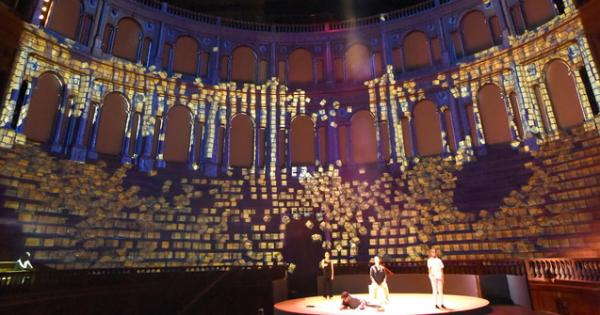 «Abbiamo rovesciato l’assetto del teatro: il pubblico sarà seduto su una pedana inclinata, mentre l’emiciclo del teatro e le scalinate diventeranno la scena. Sulle gradinate verranno proiettate immagini e faremo grande uso di luci e laser che, con il fumo, creeranno diversi piani e soffitti. Lo scopo è che gli spettatori siano completamente immersi nella storia».