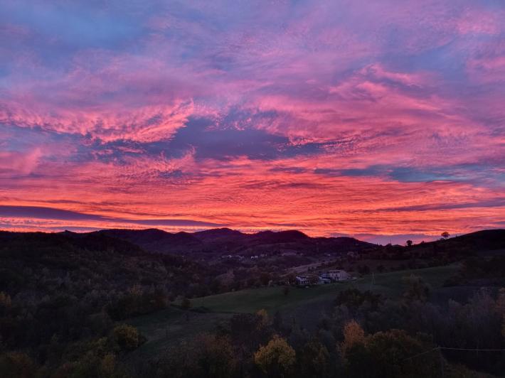 Il nostro lettore Andrea Rossi invia foto e video di un suggestivo tramonto a Cedogno (Neviano).