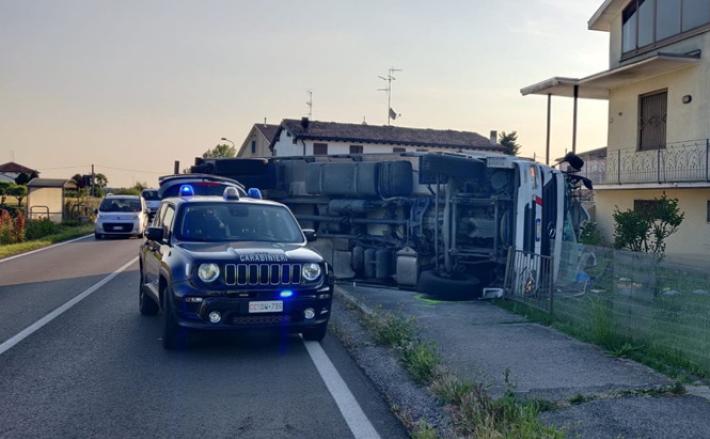 Alle 5.30 i carabinieri della stazione di Gualtieri  sono intervenuti lungo la provinciale via Cisa all’altezza di Lentigione di Brescello. E' lì che, per cause in corso di accertamento , un camion che trasportava oltre 6 tonnellate di frutta e verdura si è ribaltato finendo la sua corsa contro le recinzioni di due abitazioni.