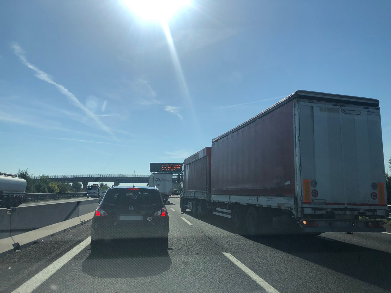 Doppio incidente intorno alle 10 e un quarto sull'A1 in direzione Bologna, il primo al km 122, il secondo più grosso al km 127. Il traffico ha subito rallentamenti.