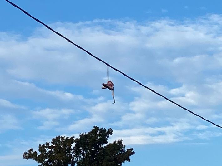 Ancora segnalazioni relative al cosiddetto "Shoefiti", scarpe da ginnastica che vengono appese ai cavi elettrici in strada. E a quanto pare si tratterebbe di una sorta di codice che indica la presenza di spaccio di stupefacenti nella zona o, in alternativa, la possibilità di commettere furti.