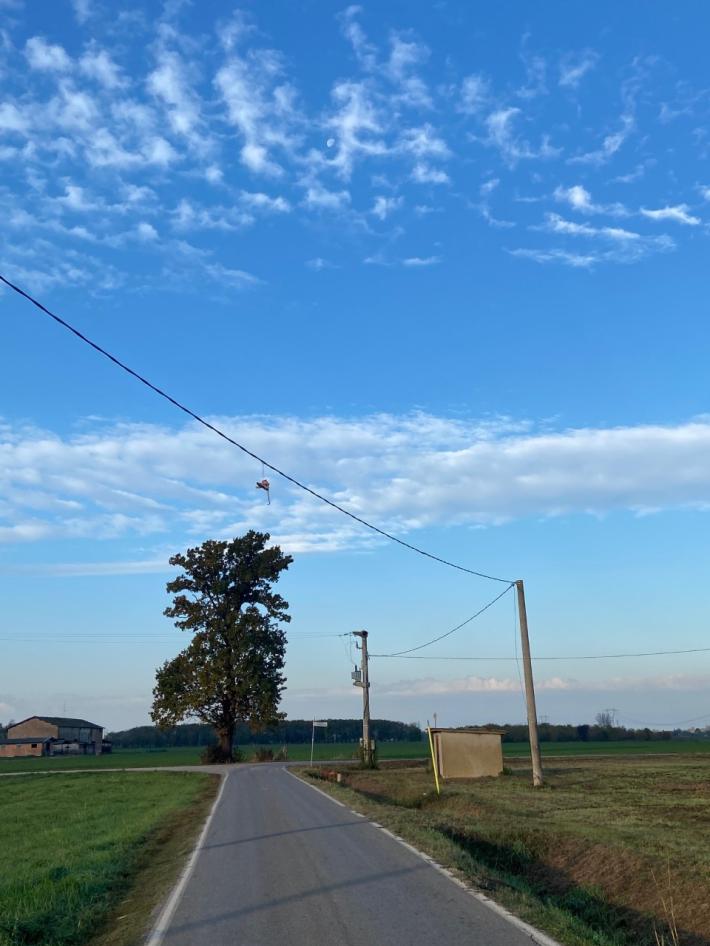 Le foto che pubblichiamo qui riguardano una strada di campagna in Val d'Enza, fra Montecchio e Bibbiano, dove un paio di scarpe è comparso solo pochi giorni fa.