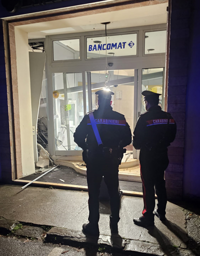 Giunti sul posto i carabinieri avevano modo di accertare che i malviventi, poco prima, erano entrati nei locali dove si fanno i prelievi del bancomat e con della carica esplosiva collocata nel bancomat hanno fatto esplodere la postazione ATM prelevando il danaro contante riposto all’interno, in corso di quantificazione. Quindi si dileguavano. In corso di stima gli ingenti danni conseguenti alla deflagrazione causati alla filiale.