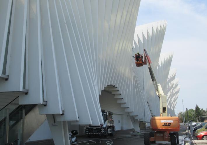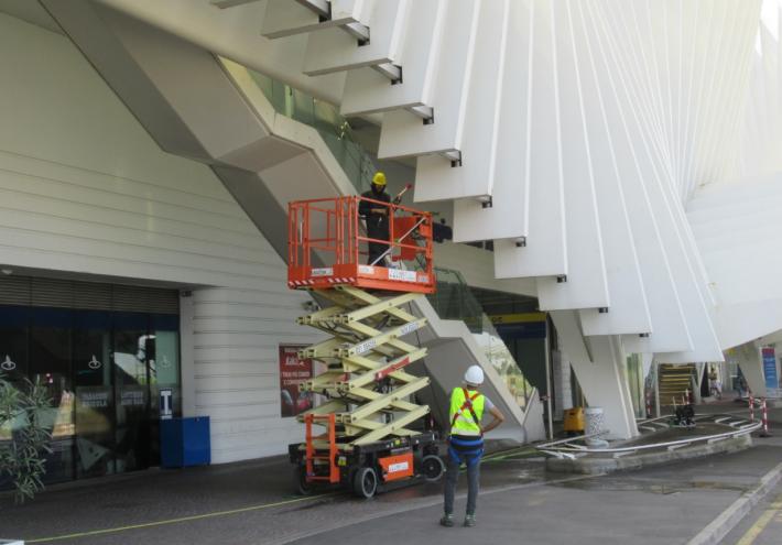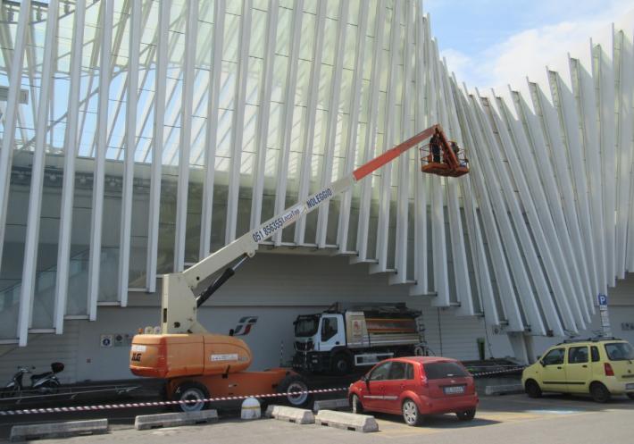 E Rete Ferroviaria Italiana–Gruppo FS ne approfitta per effettuare alla stazione Mediopadana approfonditi lavori di pulizia delle pareti esterne ed interne con idropulitrici ad acqua e piattaforme elevatrici fino a 28 metri, con l’utilizzo di cisterne d’acqua da 10mila litri. In questi giorni una squadra di 6 operai, in assenza di treni e viaggiatori, provvede a rimuovere gli accumuli di polvere e ragnatele, anche nelle aree coperte e nei vani scale.