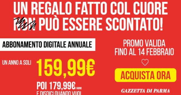 Arriva la super offerta di San Valentino della Gazzetta di Parma che ti permetterà di avere il giornale della tua città a soli 159.99€ per 1 anno.