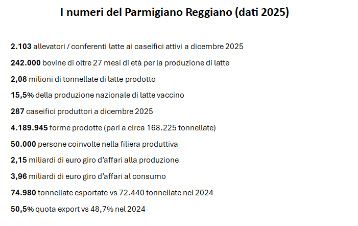 Il Parmigiano Reggiano rafforza il proprio posizionamento globale e consolida il valore, in un contesto macroeconomico complesso. È quanto emerge dai dati economici 2025 presentati oggi dal Consorzio nel corso dell’annuale conferenza stampa a Palazzo Giureconsulti a Milano.