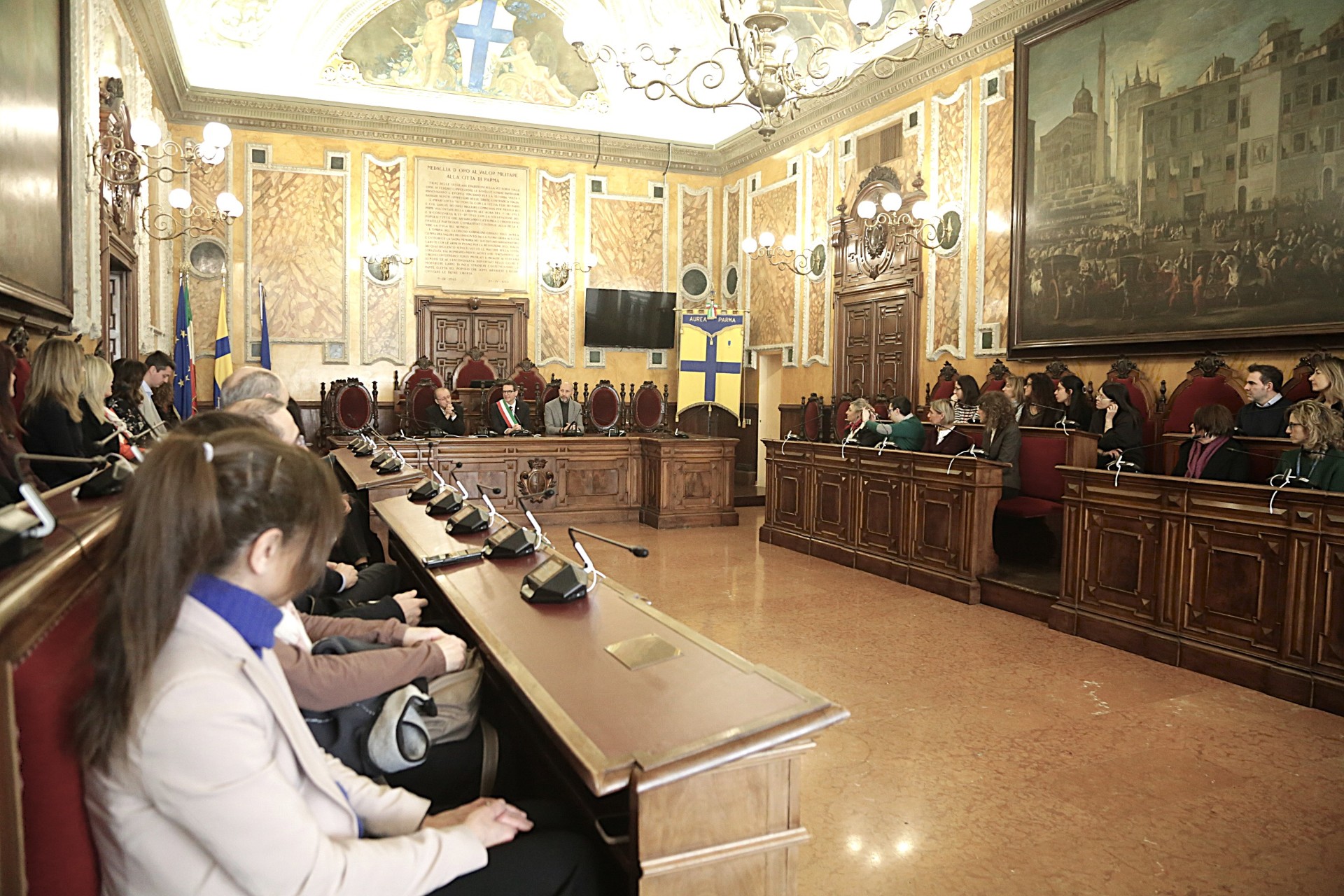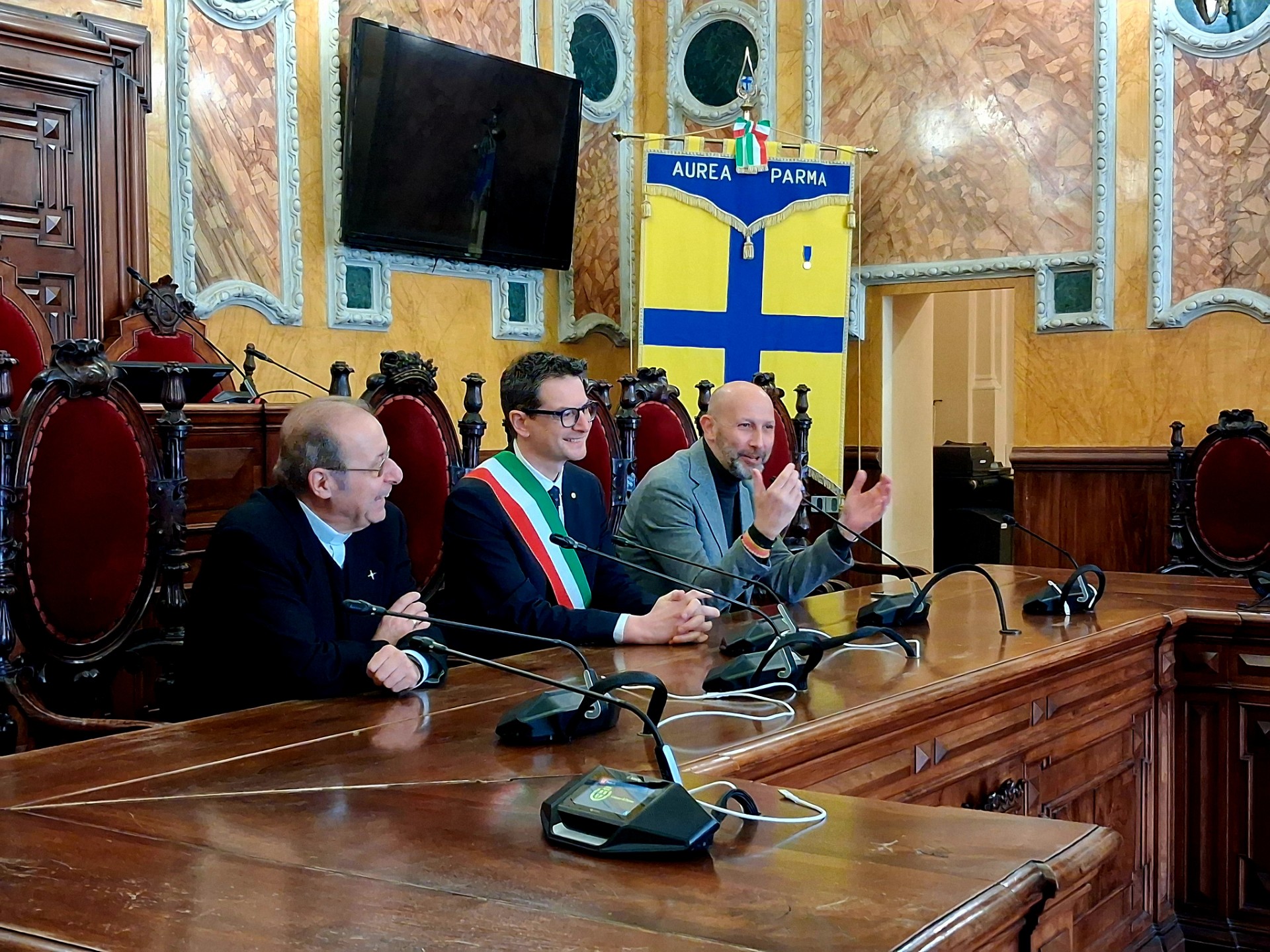 Per il tradizionale scambio di auguri in vista della Pasqua il vescovo di Parma è stato accolto in mattinata in Municipio dal sindaco Michele Guerra e dal presidente del Consiglio Comunale Michele Alinovi  L’incontro si è svolto nella sala del Consiglio comunale alla presenza di numerosi dipendenti dell’Ente.