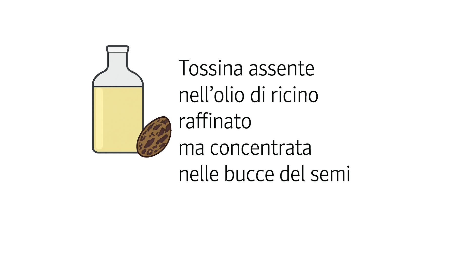 La ricina è una proteina tossica, una cosiddetta toxalbumina, estratta dai semi del ricino (Ricinus communis). È costituita da due catene, A e B, unite da un ponte disolfuro: la catena B si comporta come “gancio” che aderisce ai recettori su molte cellule, mentre la catena A è l’“arma” vera e propria che disattiva la sintesi proteica. La tossina non è presente nell’olio di ricino raffinato per uso farmaceutico, ma si concentra in particolare nel rivestimento dei semi non trattati. Per questo motivo, la manipolazione richiede cautele di biosicurezza; come ogni informazione sensibile, i protocolli operativi non vengono divulgati al pubblico.