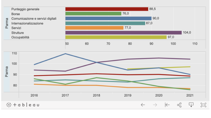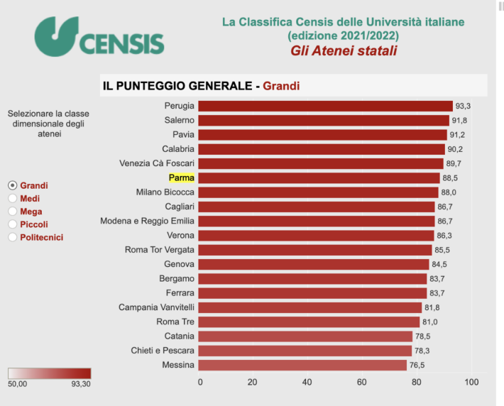 Nelle grandi università Parma è in sesta posizione (88,5).