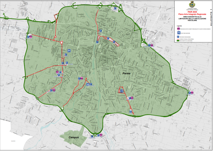 Le misure antismog adottate dal Comune di Parma sono collegate al PAIR2020 – Piano Aria Integrato Regionale – che prevede limitazioni alla circolazione per i veicoli più inquinanti nei centri urbani dei Comuni con più di 30 mila abitanti ed in quelli dell'agglomerato urbano di Bologna, e nelle domeniche ecologiche.