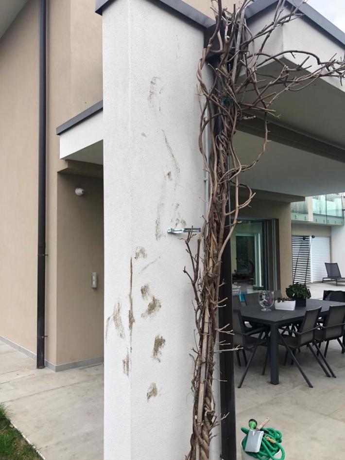 Una banda di ladri, probabilmente tre, giovedì sera ha preso di mira un gruppo di ville di Vigheffio. Le foto che vi mostriamo sono state riprese dal video delle telecamere di sicurezza installate in una di queste ville alle 19,45 di giovedì, mentre la famiglia proprietaria era all'interno. Fortunatamente per questa famiglia il colpo non è andato a segno perché è scattato il tam tam del controllo di vicinato e subito gli abitanti si sono allertati costringendo i ladri alla fuga. Sono stati poi inseguiti ma non raggiunti. Nelle foto si notano il ladro, con la felpa rossa sulla destra, e il pilastro sul quale ha cercato di arrampicarsi dove appaiono ancora evidenti i segni lasciati dalle sue scarpe.