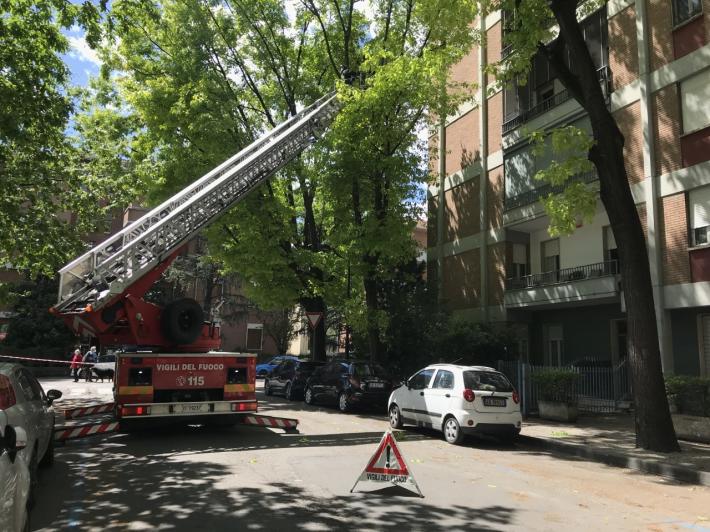 Probabilmente a causa del vento, questa mattina intorno alle 9 un albero si è abbattuto su un'auto in sosta e su una palazzina. E' accaduto in via Lemoigne, laterale di via Testi.