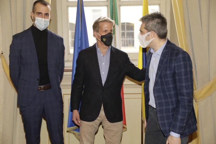 Kyle Krause insieme a una delegazione del Parma Calcio si è recato questa mattina in Municipio. E’ stato ricevuto dal sindaco Federico Pizzarotti e dal vicesindaco Marco Bosi, per discutere del progetto di riqualificazione dello Stadio Tardini.