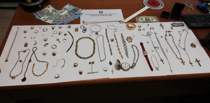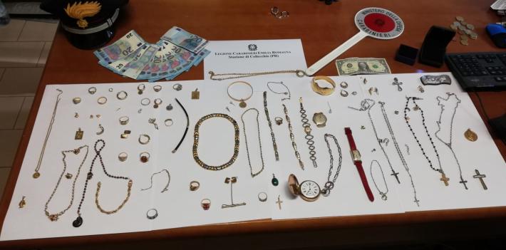 Il valore dei preziosi recuperati: anelli in oro e diamanti, collane, bracciali, orologi, denaro contante e oggetti vari anche di ingente valore è stimato in diverse migliaia di euro. I cittadini che hanno subito furti negli ultimi tempi e ritengono di poter riconoscere i propri gioielli tra quelli rinvenuti possono rivolgersi per informazioni alle stazioni dei carabinieri di Collecchio e Sala Baganza.