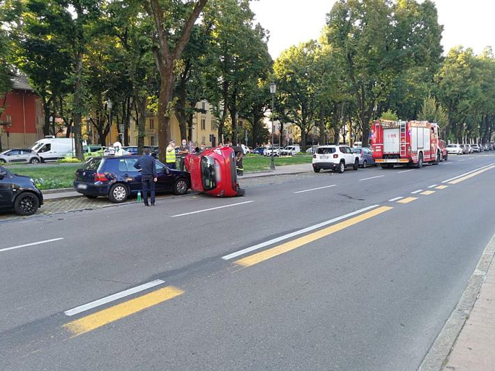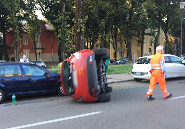 La scena che si è presentata è quella di un'auto finita contro una vettura parcheggiate e poi rimasta su due ruote. Ore 8.30, viale San Michele: in un orario ad alta intensità di traffico, la dinamica dell'incidente è ancora tutta da chiarire. Sul posto sono arrivati un'ambulanza inivata dal 118, i vigili del fuoco e la polizia municipale. Solo lievi contusioni, fortunatamente, per il conducente dell'auto.