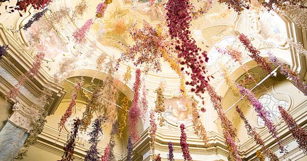 Florilegium è composto da 200.000 fiori che rappresentano, simbolicamente, la comunità dei cittadini di Parma. Dall’Irlanda arriva la tecnica di essiccazione naturale dei fiori che, grazie alla preziosa manifattura di una coppia di contadini locali, da diversi anni caratterizza il processo creativo dell’artista.