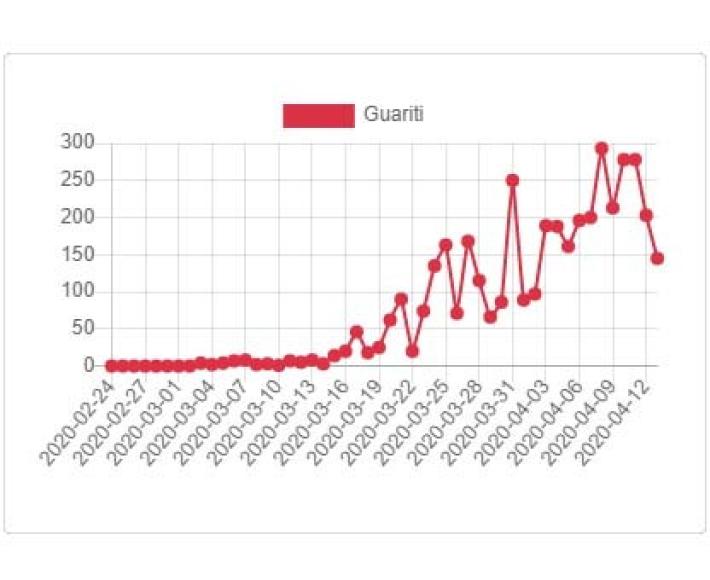 Continuano, nel frattempo, a salire le guarigioni , che raggiungono la quota 4.007 (+145), delle quali 1.923 persone interessate “clinicamente guarite”, divenute cioè asintomatiche dopo aver presentato manifestazioni cliniche associate all'infezione; 2.084 quelle dichiarate richieste a tutti gli effetti perché risultate negative nei test consecutivi previsti.