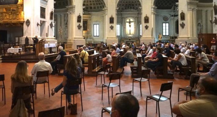 ROBERTO LONGONI Alle 20 sul sagrato dell'Annunziata ci sono già capannelli di persone. La gente l'ha portato con sé, Luigi Guareschi, il «suo» Luigi: nell'attesa che si possa entrare nella cattedrale dell'Oltretorrente, si...