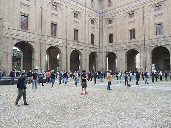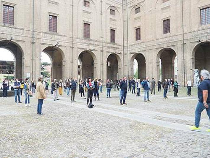 Dopo lo stadio Tardini e la sede dell’Agenzia delle Entrate, le Mascherine tricolori scendono di nuovo in piazza per lanciare la loro sfida al governo. È la terza uscita in città del movimento, che oggi pomeriggio ha radunato oltre 150 persone nel piazzale interno della Pilotta.