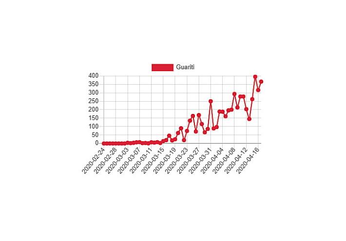 Le persone complessivamente guarite salgono a 5.346 (+366): 2.167 “clinicamente guarite”, divenute cioè asintomatiche dopo aver presentato manifestazioni cliniche associate all’infezione, e 3.179 dichiarate guarite a tutti gli effetti perché risultate negative in due test consecutivi.