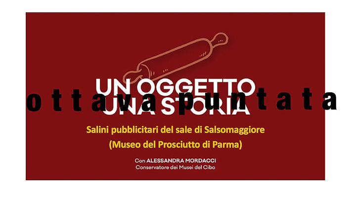 Alessandra Mordacci, Conservatore dei Musei del Cibo di Parma, racconta la storia dei salini pubblicitari del sale niveo prodotto dalle Terme di Salsomaggiore e oggi esposti nella sezione sul sale del Museo del Prosciutto di Parma a Langhirano. .