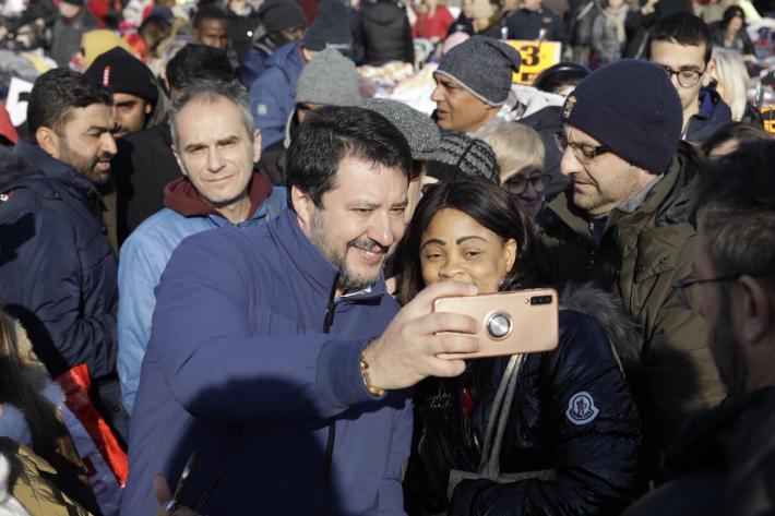 Un Matteo Salvini molto ottimista ha incontrato gli elettori questa mattina al mercato di via Traversetolo.
