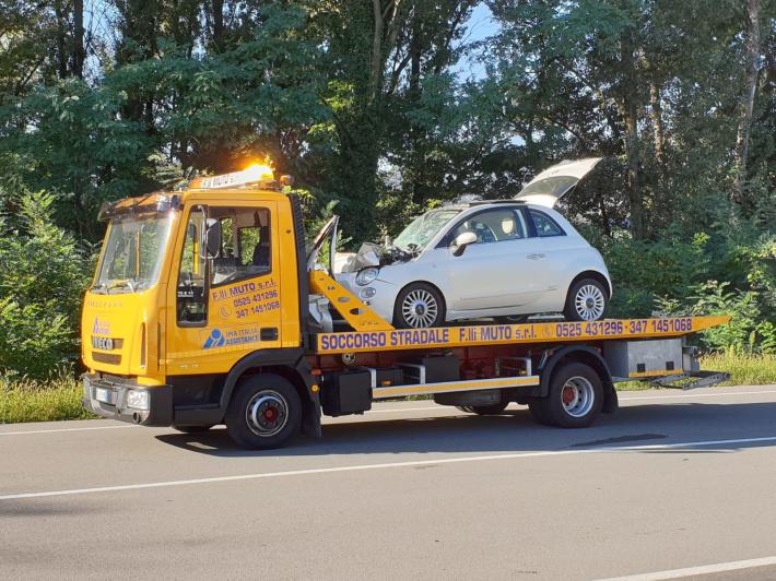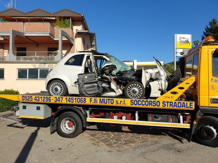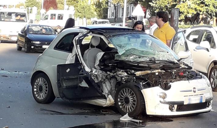 Incidente intorno alle 8.15 a Varano. A scontrarsi, in via Piani di Riva, una Fiat 500 e una pala meccanica. La conducente è stata trasportata al Maggiore in condizioni di media gravità.