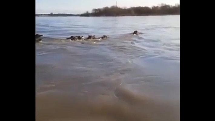 Un gruppo di cinghiali attraversa a nuoto il Po - Video
