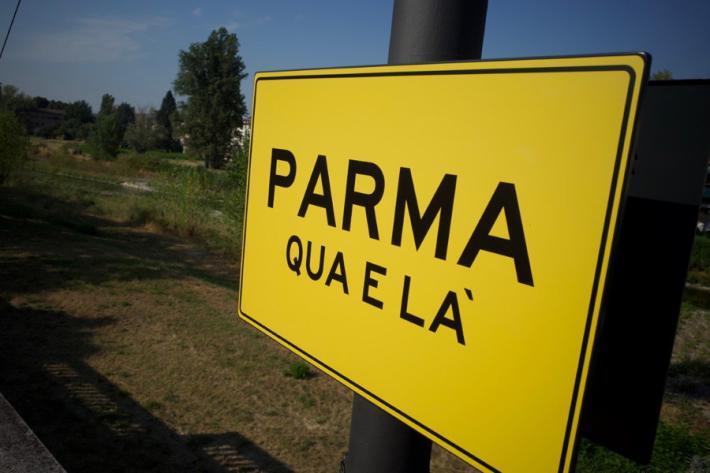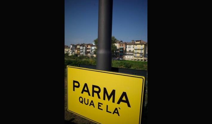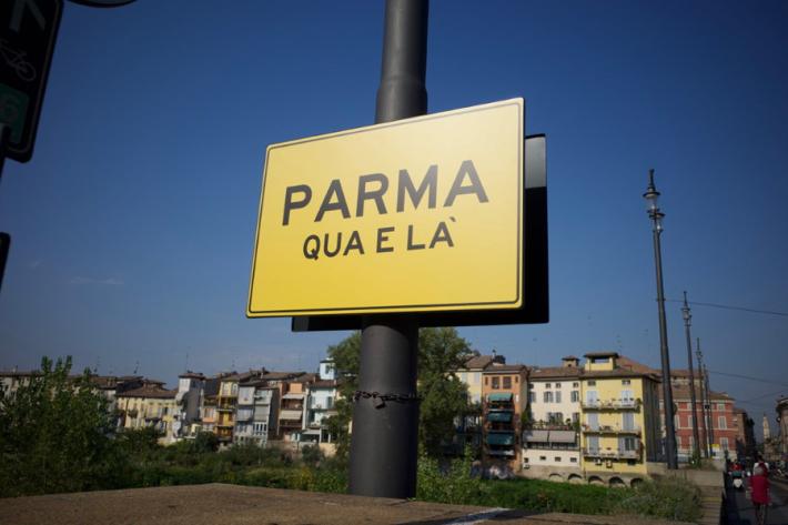 Si tratta di una installazione legata a Parma 2020+21. Guarda le foto.