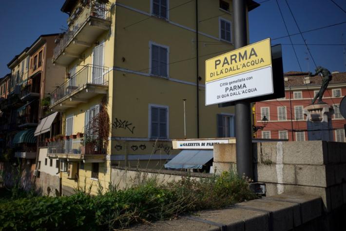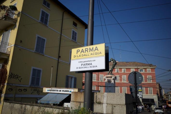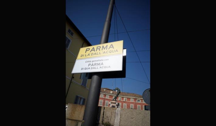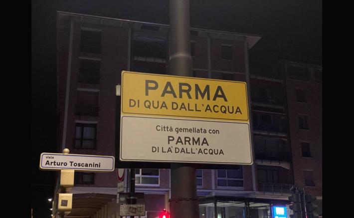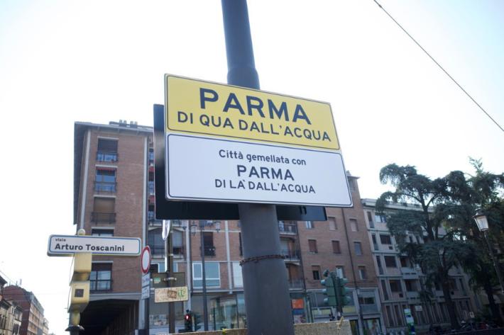 Di qua dall'acqua, di là e il ponte "neutrale": i cartelli spuntati a Parma . E la curiosità del "gemellaggio" che sta facendo impazzire i social in chiave parmigiana.
