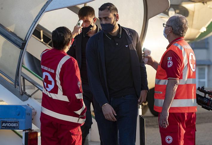 Questa sera la Nazionale è atterrata all'aeroporto Verdi: mercoledì infatti a Reggio Emilia affronterà la Lituania in una gara delle qualificazioni ai Mondiali qatarioti.