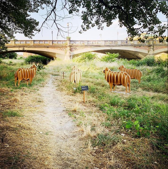 L’alveo del torrente Parma, dall’accesso del ponte Verdi è arricchito di nuove presenze. Inaugurata ieri, alla presenza dell'Assessore alla Cultura Michele Guerra e dei curatori Beatrice Ciacchella e Andrea Lusignani del collettivo Domani, fiume. L'opera dal titolo ‘Transumanza’ è il progetto, quinto classificato, tra i vincitori del bando Temporary Signs, promosso dal Comune di Parma con l’Associazione Giovani Artisti Italiani – GAI e con la collaborazione di BJCEM, nell’ambito di Parma Capitale Italiana della Cultura 2021.