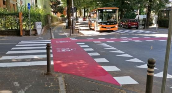 Le modifiche agli attraversamenti ciclopedonali sono state pensate con l’inserimento di segnaletica orizzontale bicolore o rialzando la zona di attraversamento, in modo da renderle ancora più visibili pedoni e ciclisti in procinto di attraversare. " La scelta del colore rosso - spiega una nota del Comune - per la segnalazione non è stata lasciata al caso: la manualistica e le evidenze europee hanno ampiamente dimostrato che il colore rosso viene percepito dall’occhio umano come elemento di pericolo e, pertanto, porta a prestare maggiore attenzione e induce gli automobilisti ad alzare il piede dall’acceleratore".