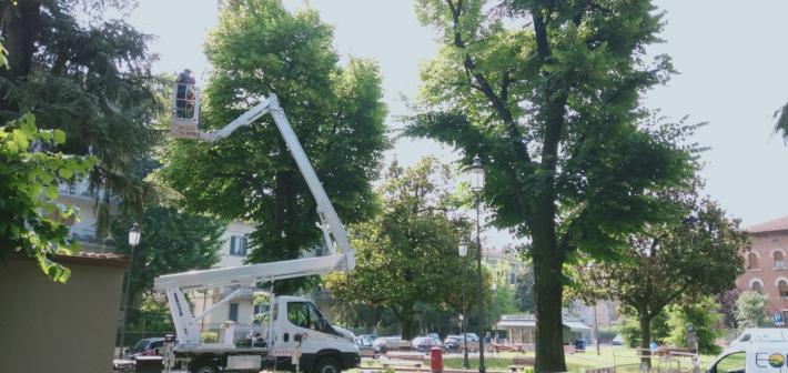 Gli interventi sulle alberature sono ritenuti urgenti per evitare di mettere a repentaglio la sicurezza di chi fruisce la piazza e di coloro che percorrono la pista ciclabile.