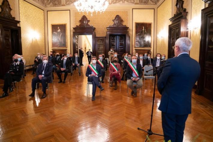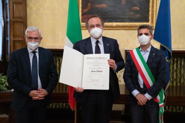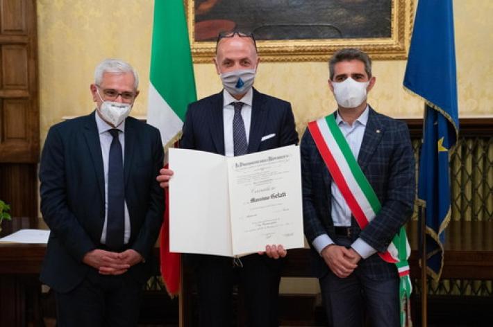 Il sindaco, Federico Pizzarotti, ha partecipato, in serata, alla cerimonia di consegna delle onorificenze dell’Ordine “Al Merito della Repubblica Italiana”. In occasione del 75° anniversario della fondazione della Repubblica Italiana, il Prefetto, Antonio Lucio Garufi, ha consegnato le onorificenze a Palazzo Rangoni.