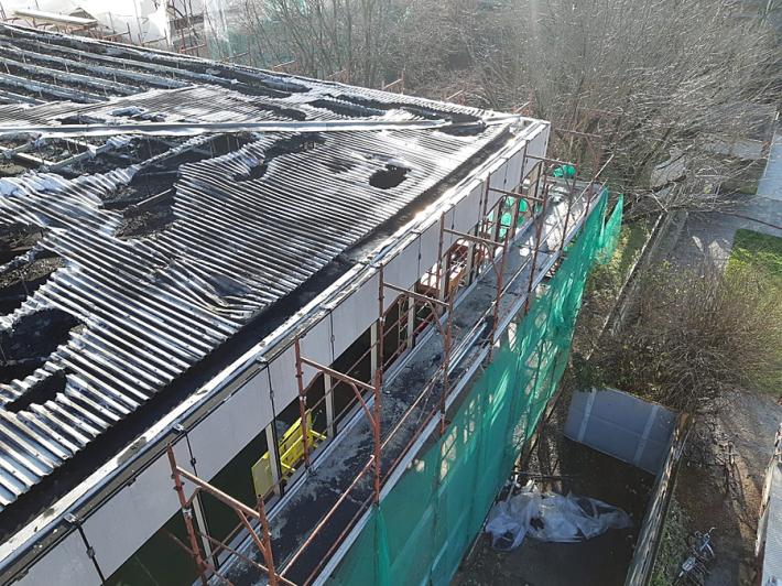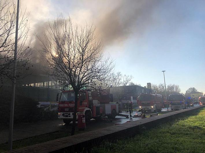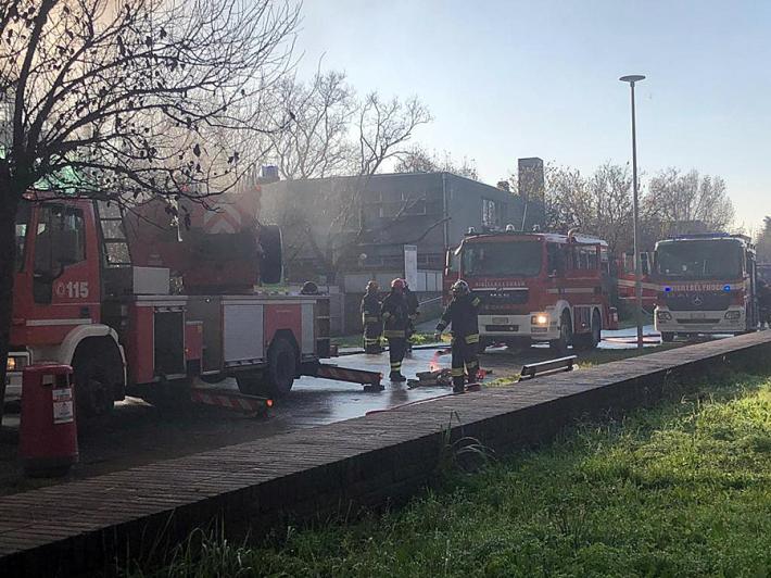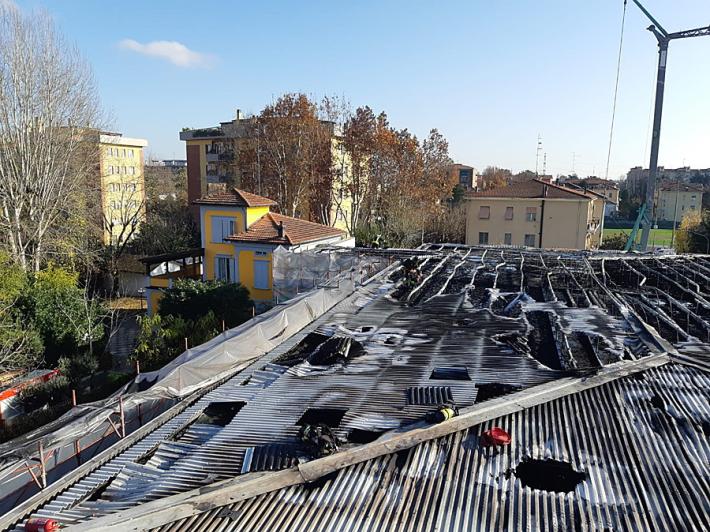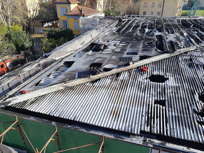 l'incendio è stato spento intorno alle 10.50. Continuano le operazioni di messa in sicurezza e di verifica della struttura e i rilievi per stabilire le cause del rogo.