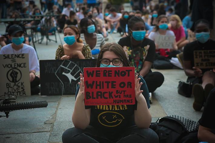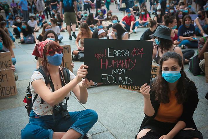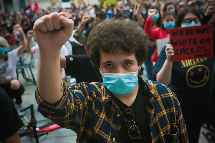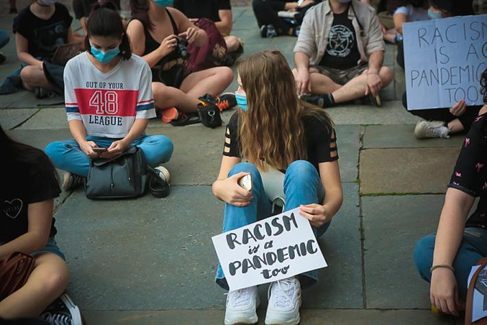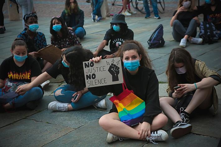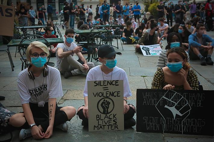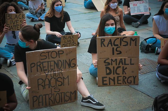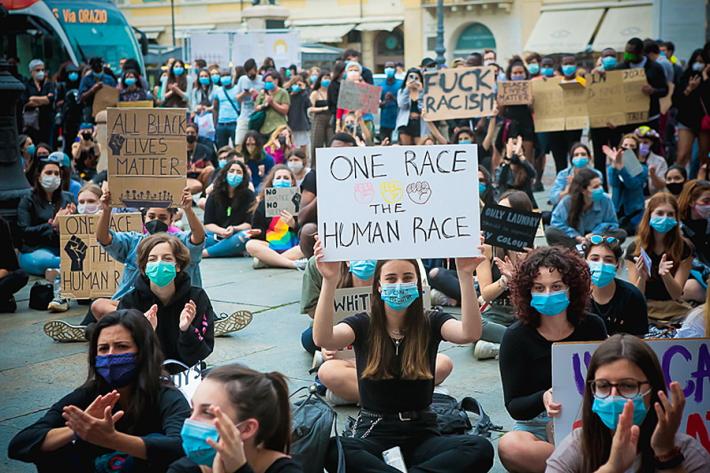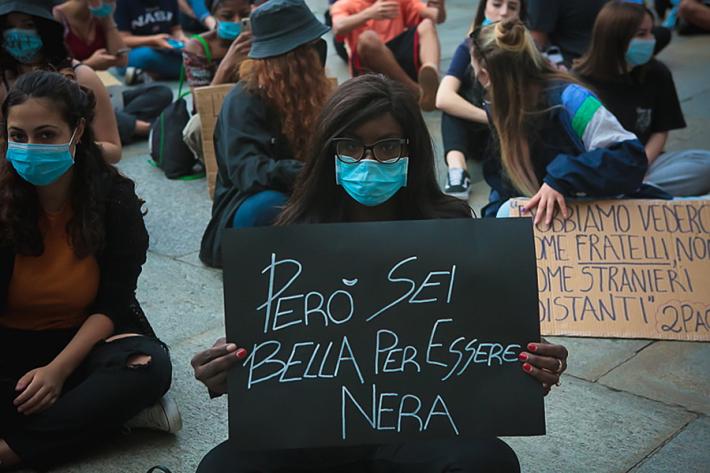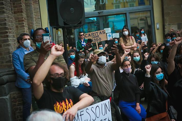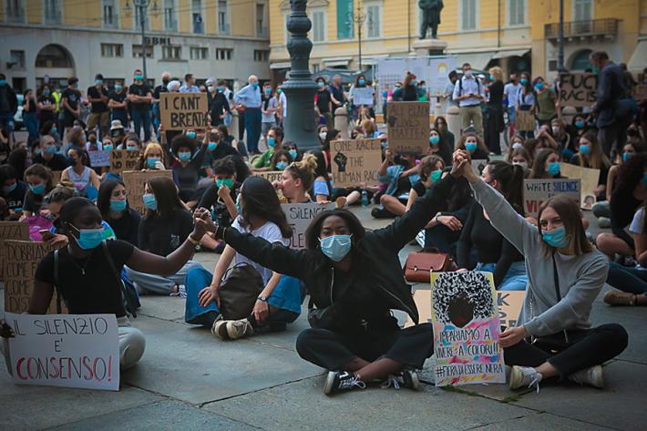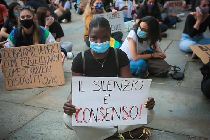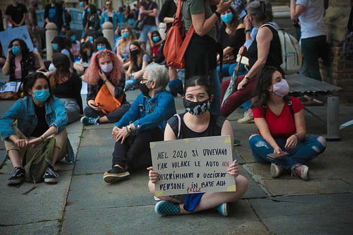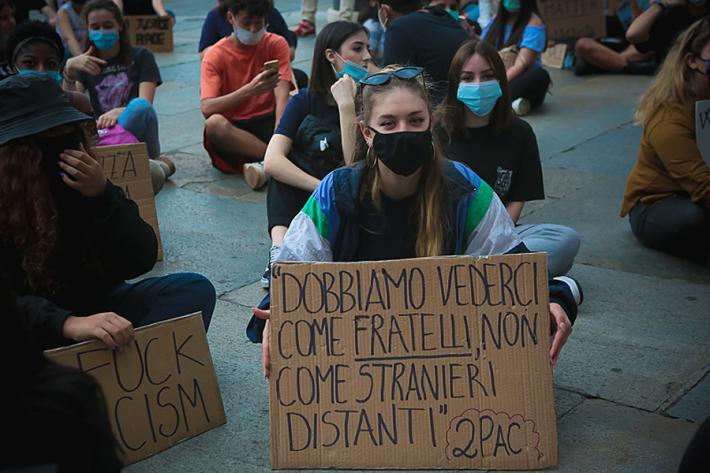 Tanti i giovani che hanno risposto all’appello lanciato da decine di associazioni cittadine per dire «no» al razzismo. Mascherine al volto, cartelli alla mano, tutti hanno ascoltato con passione gli interventi degli organizzatori del presidio.