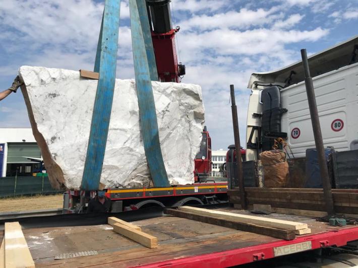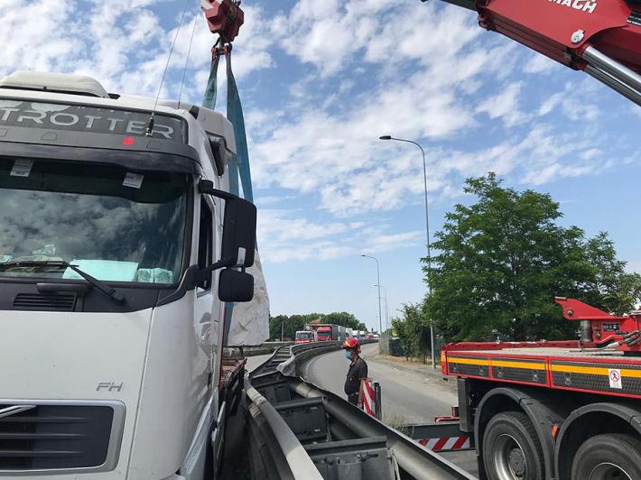 Spaventoso incidente nel pomeiggio sull'Asolana, nella prima rotatoria dopo la tangenziale. Nell'affrontarla, un camion ha perso un grosso blocco di marmo. Per rimuoverlo sono intervenuti i vigili del fuoco.